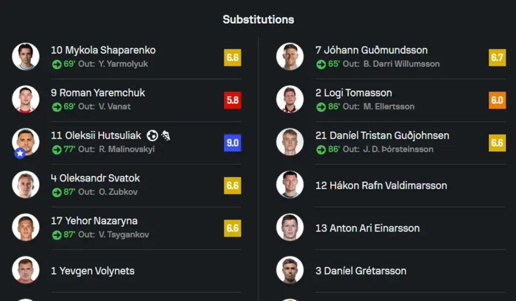 Статистичні портали «WhoScored» і «Sofascore» визнали найкращим гравцем вінґера Олексія Гуцуляка, який вийшов з лави запасних, відзначившись голом і асистом – оцінки 8,4 і 9,0 відповідно.